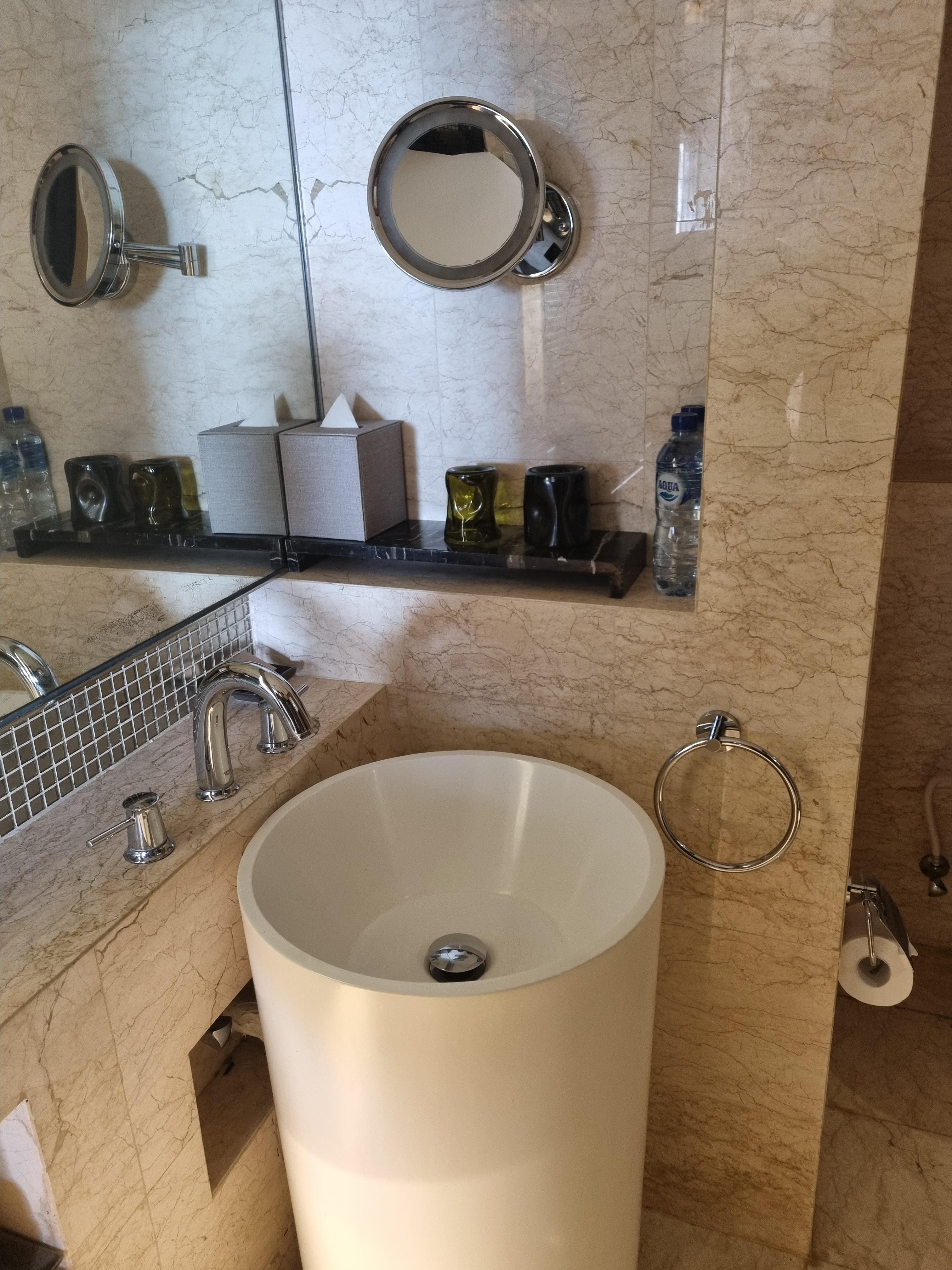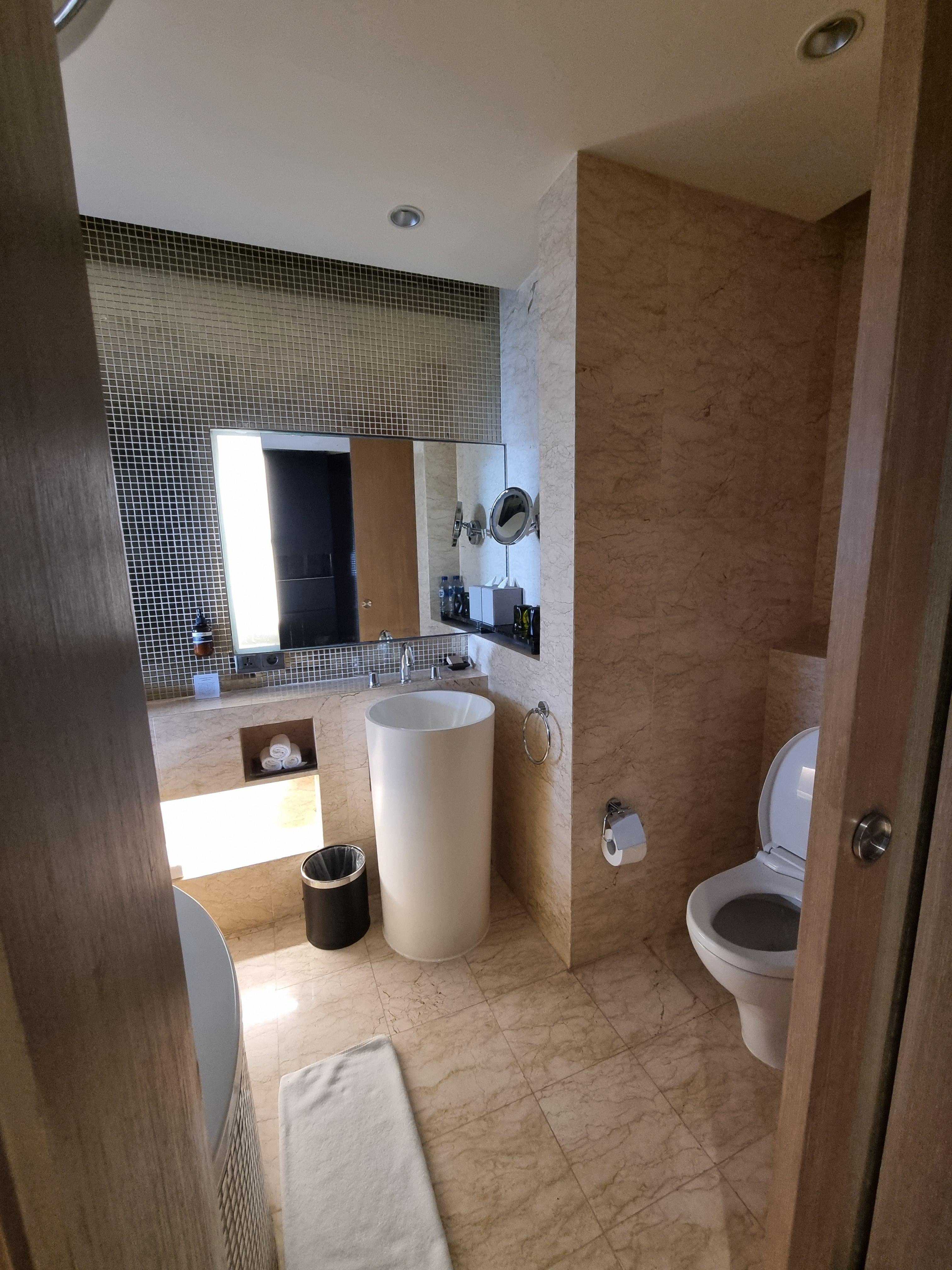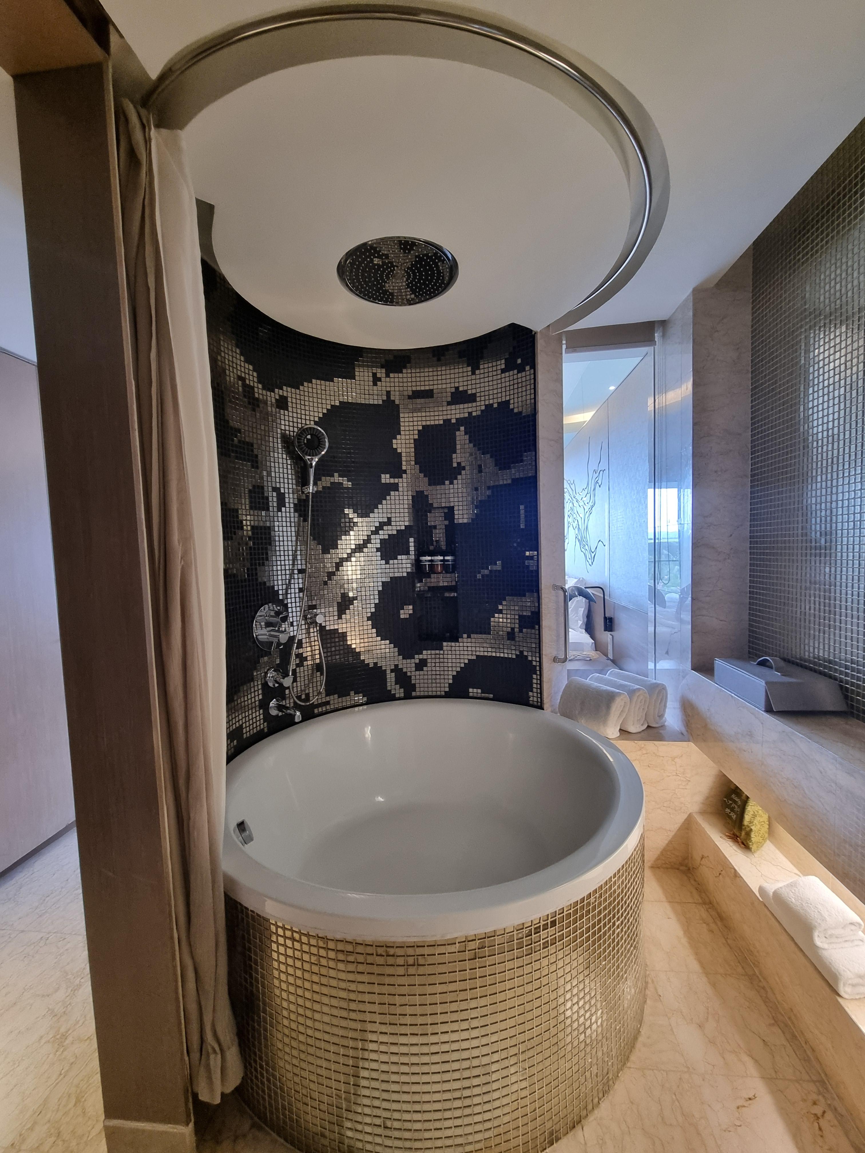 욕실로 들어옵니다. 동그란 욕조가 있습니다.