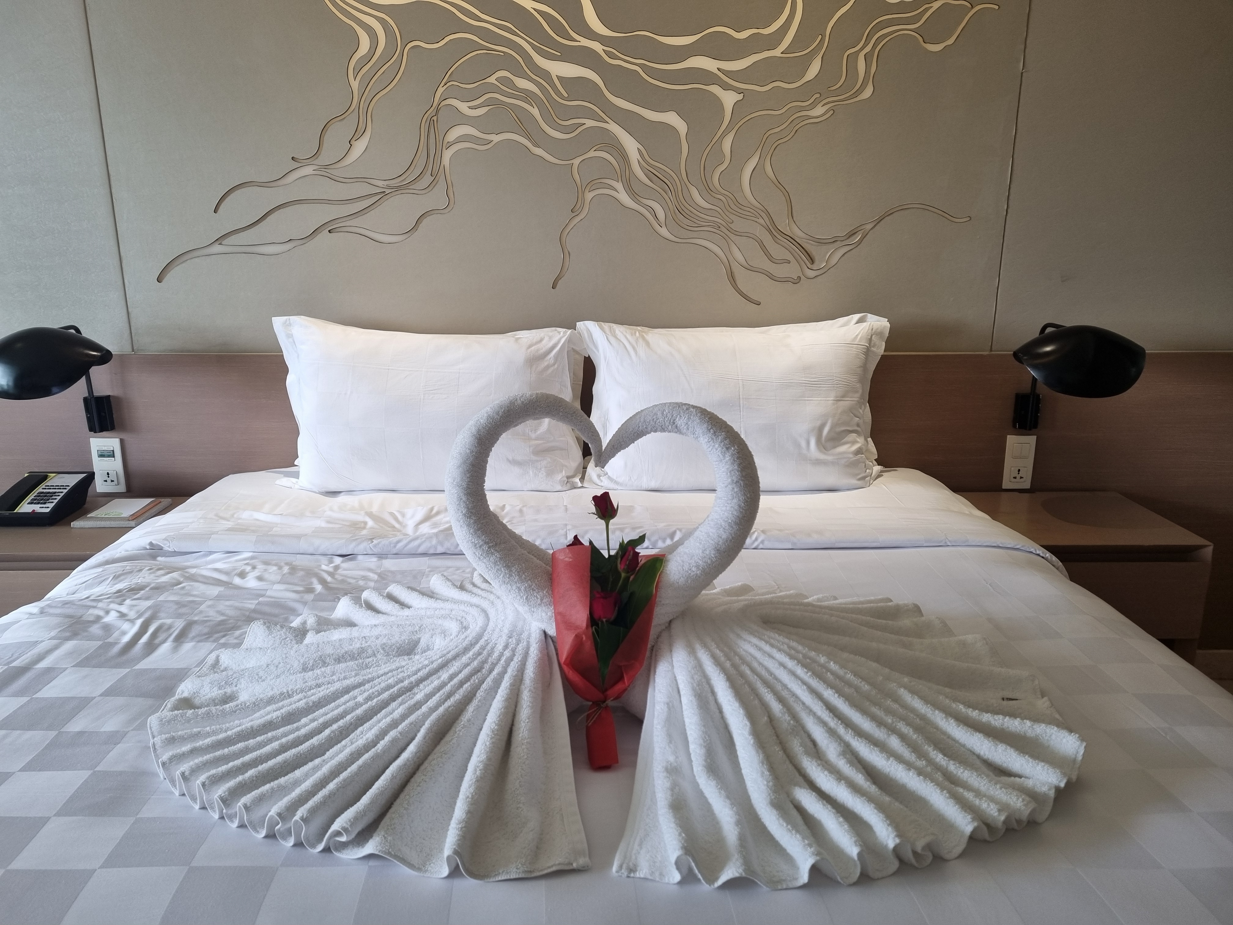 신혼여행이라고 예약된 걸 보고 수건으로 만들어 주신 거 같습니다.