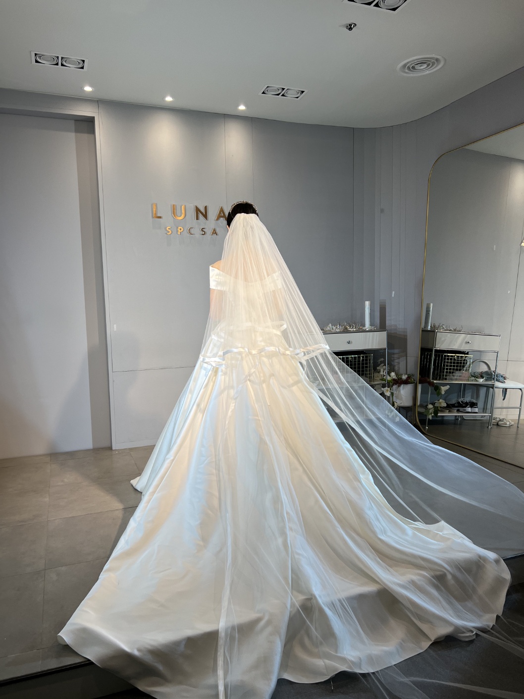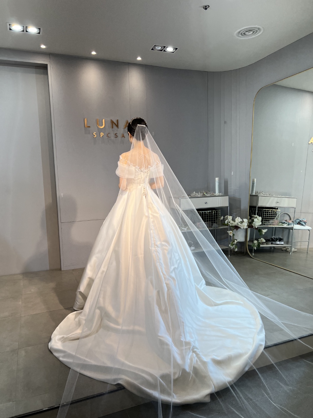 투어 전 마음속으로 실크드레스 + 투베일 조합을 생각하며 갔는데 실제로 베일을 착용해 보면서 선택은 다른걸 했어요