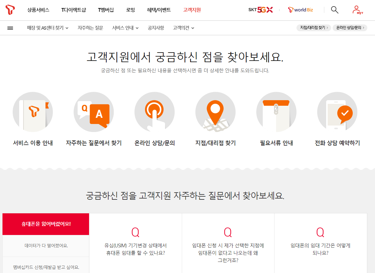 요금제, 가입, 변경, 해지, T로밍, T멤버십 등 다양한 서비스에 대해 지원을 받을 수 있습니다.