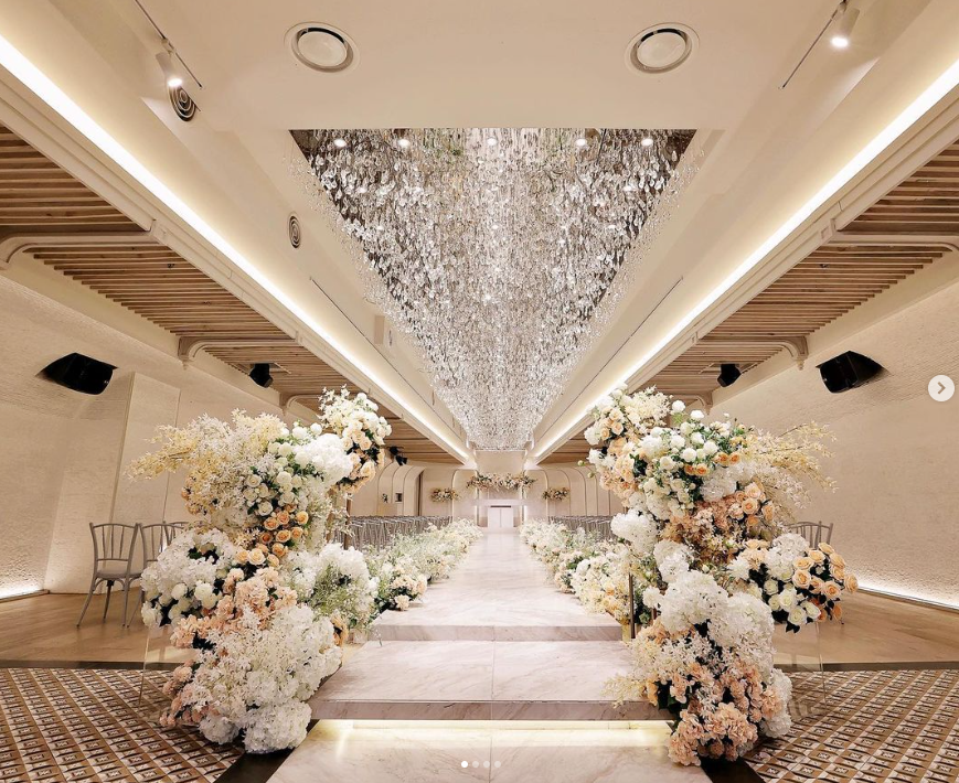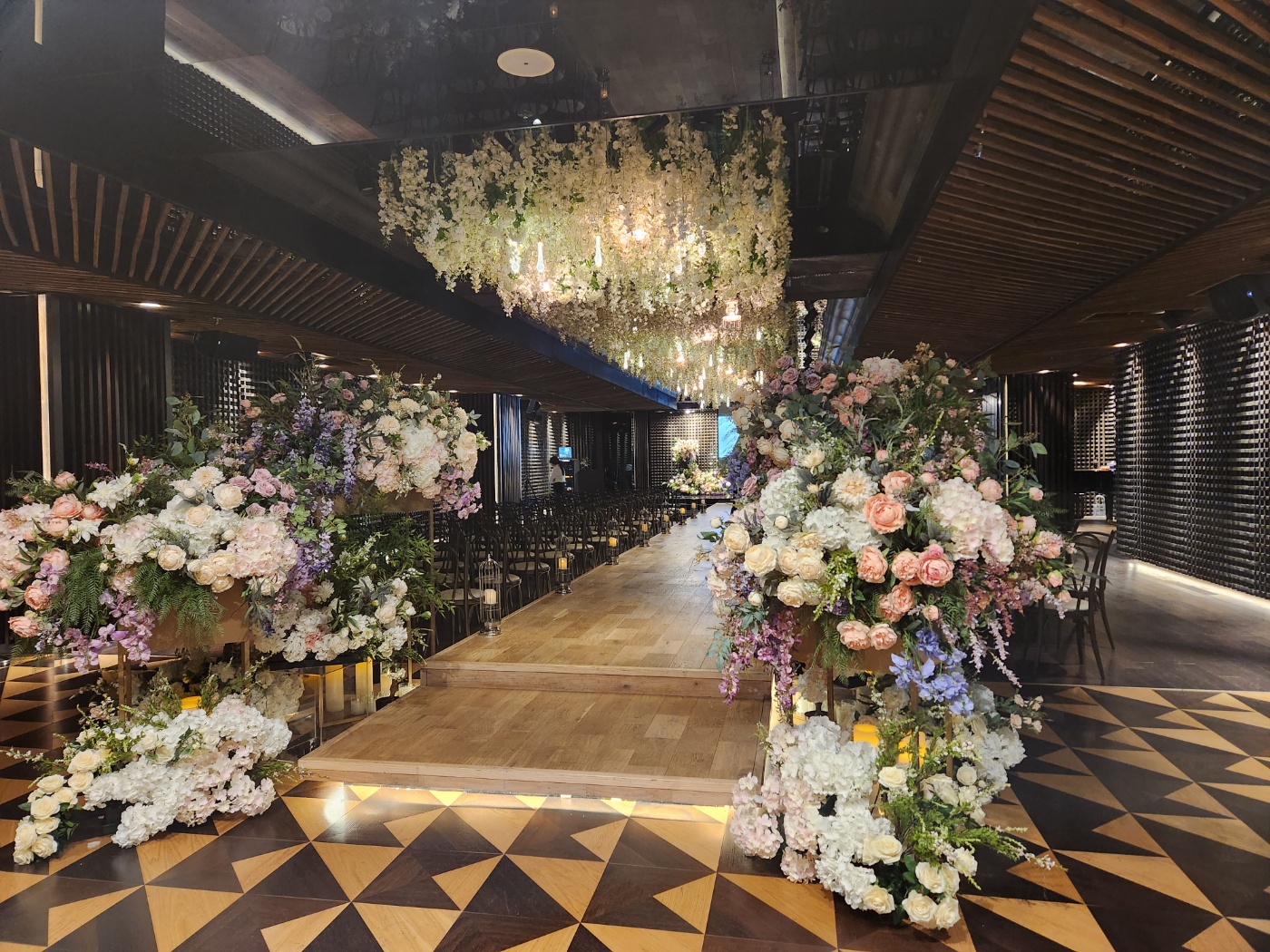 버진 로드 초입 부분 꽃 장식과 천장의 내려오는 꽃 장식이 다채롭고 예뻤습니다.