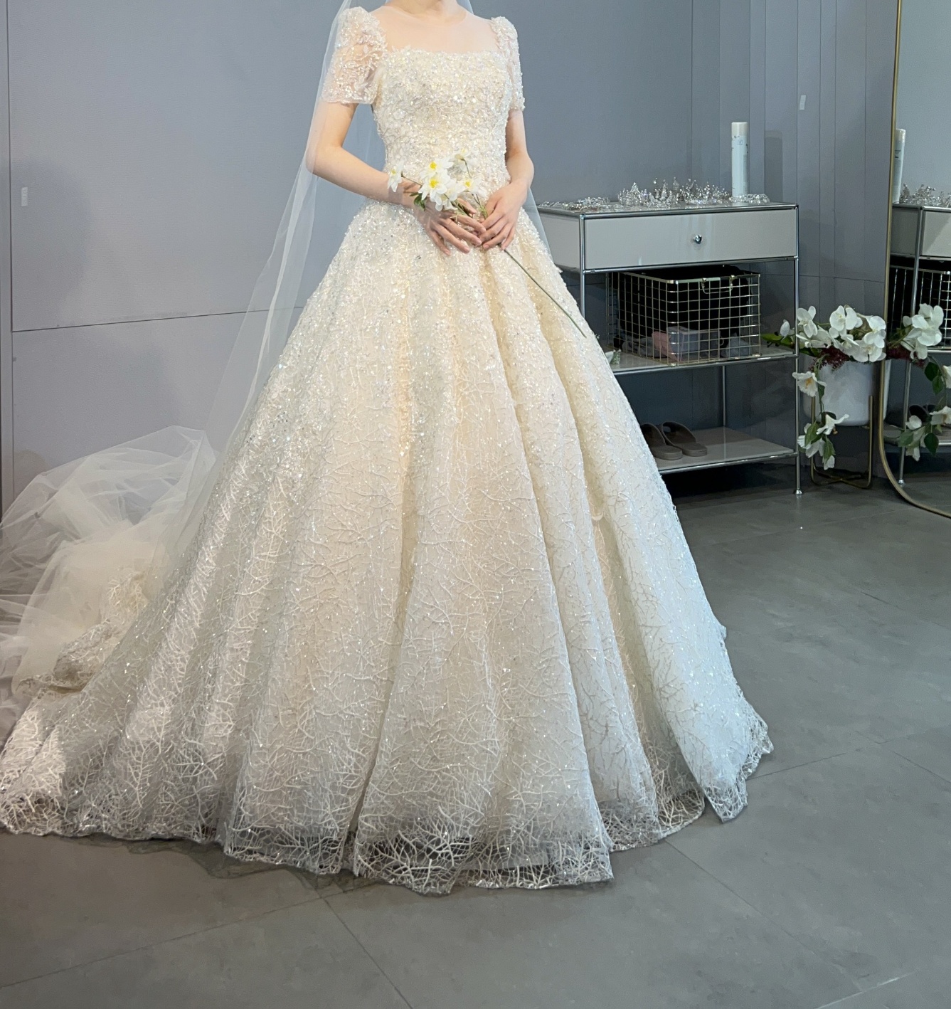 부산 루나스포사 본식 베일 고르기, 당일 헤어 장식 악세서리와 구두