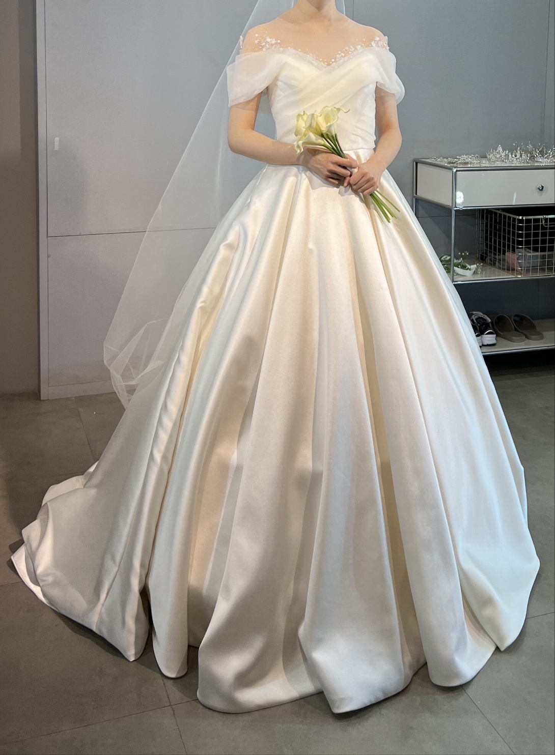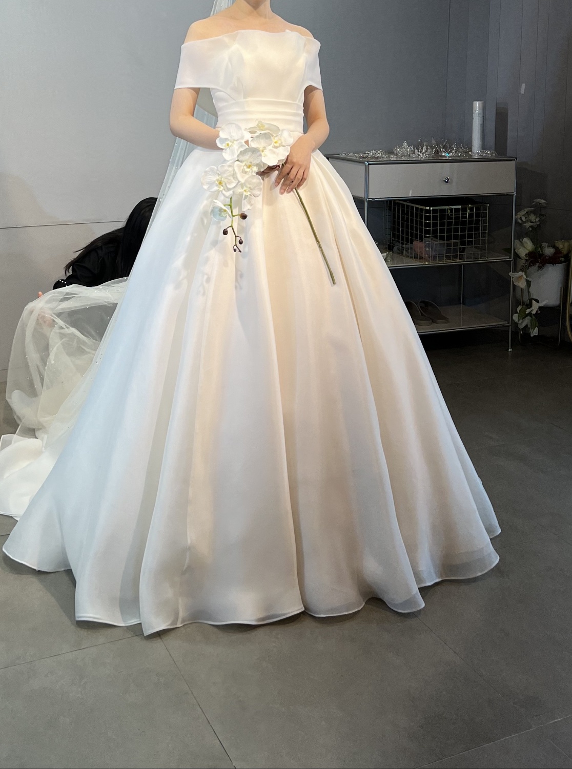 부산 루나스포사 본식 드레스 턱시도 피팅 셀렉 후기(실크 오간자 미카도 비즈 오프숄더 스퀘어넥 벨라인 A라인) 투어 추가 비용, 추가금 있는 없는