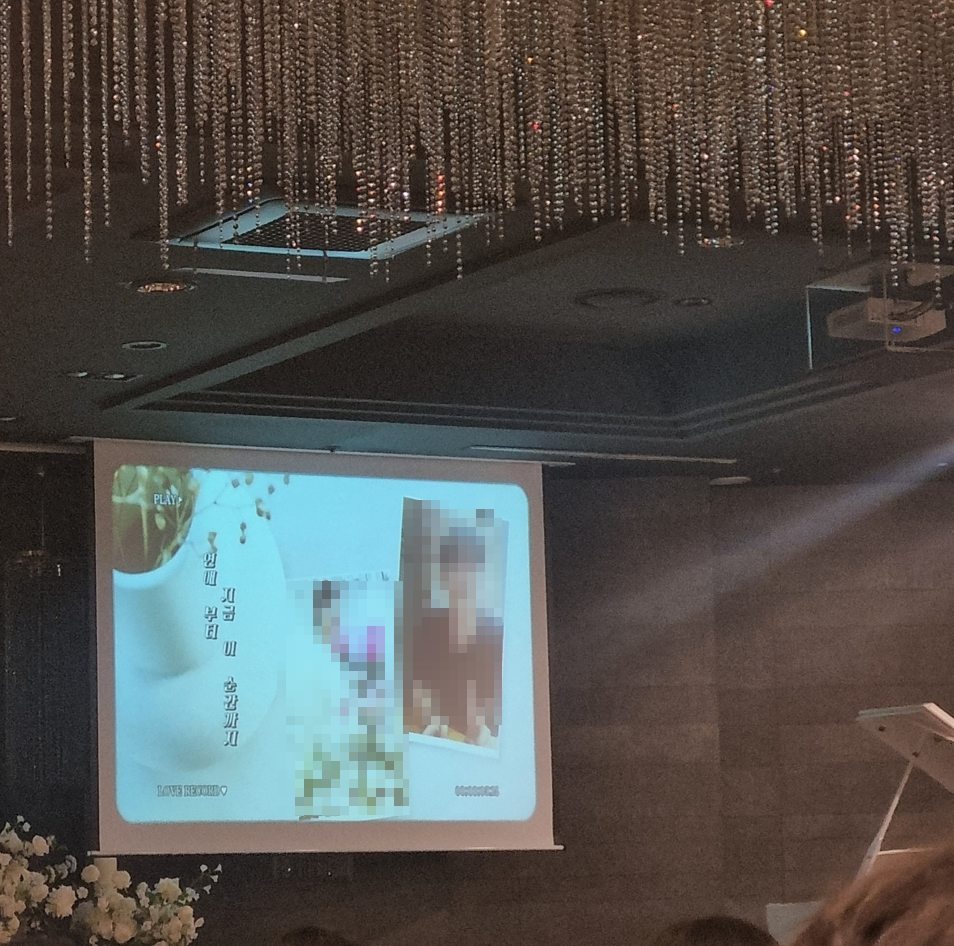 결혼식 당일 식전영상이 틀어진 모습입니다.