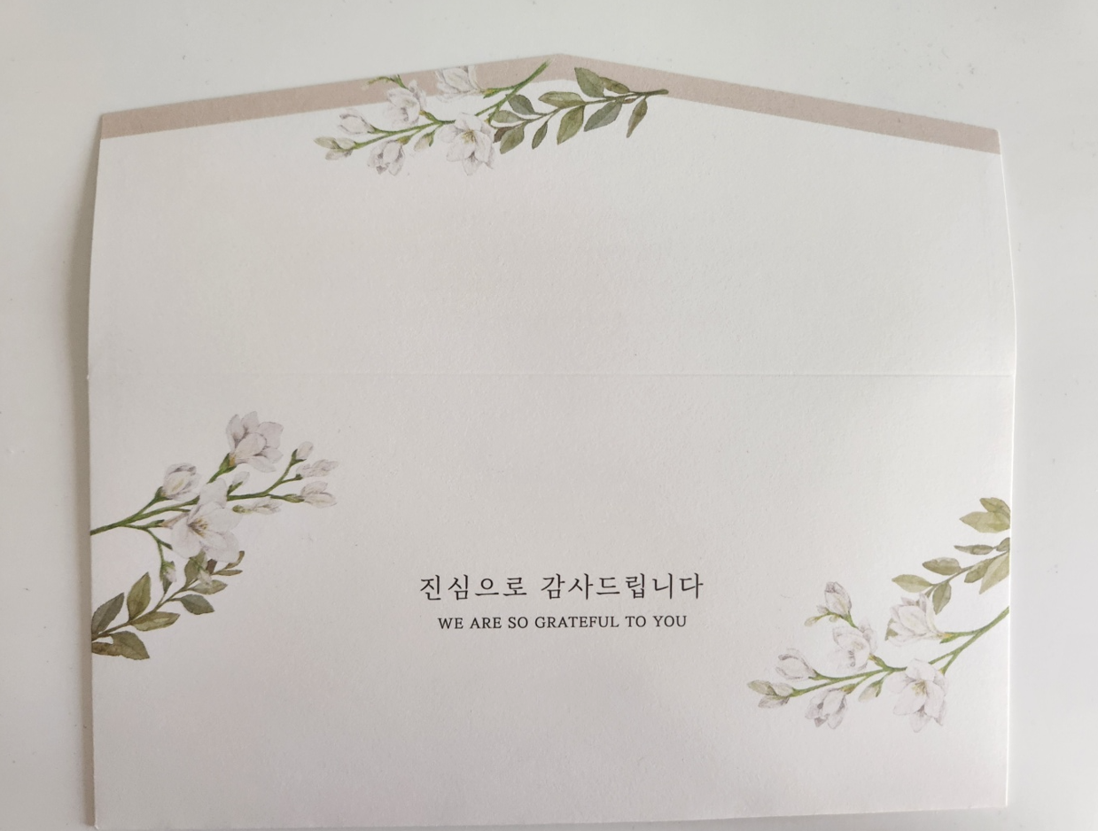 미리 답례 봉투를 네이버로 주문해서 준비해 갔어요. 문구까지 인쇄되어 있고 스티커도 붙일 필요가 없어서 편했어요.
