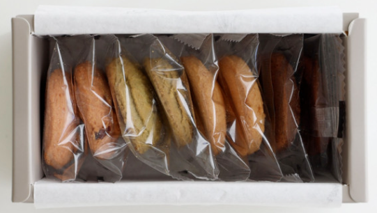 쿠키는 총 8개 들어 있어요. 4가지 맛(치즈, 초코, 녹차, 크랜베리)
