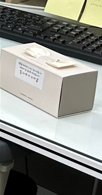 출근해서 자리에 하나씩 놔두 었습니다.