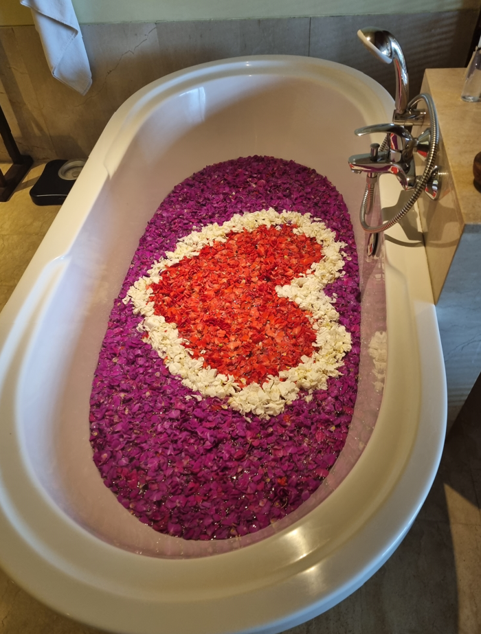 다음날 룸 정리를 해주시면서 허니문인 저희를 위해 욕조도 꽃잎으로 장식해주셨습니다.