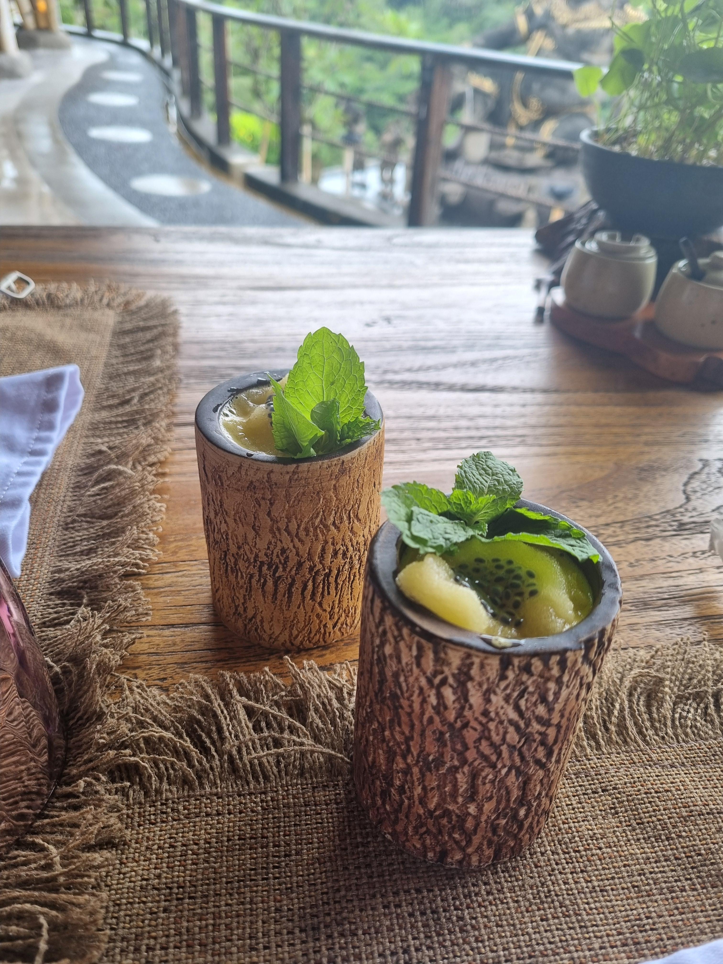 담아주신 컵도 정글에 어울리는 나무식기었습니다.
