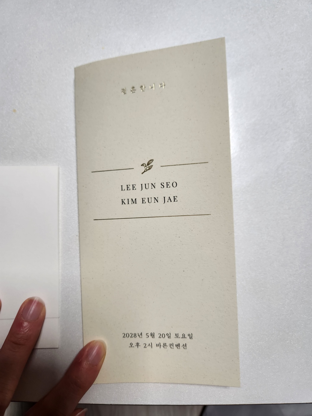 청첩장 봉투에 이름 적는 위치를 고민했는데 정답은 없더라고요.