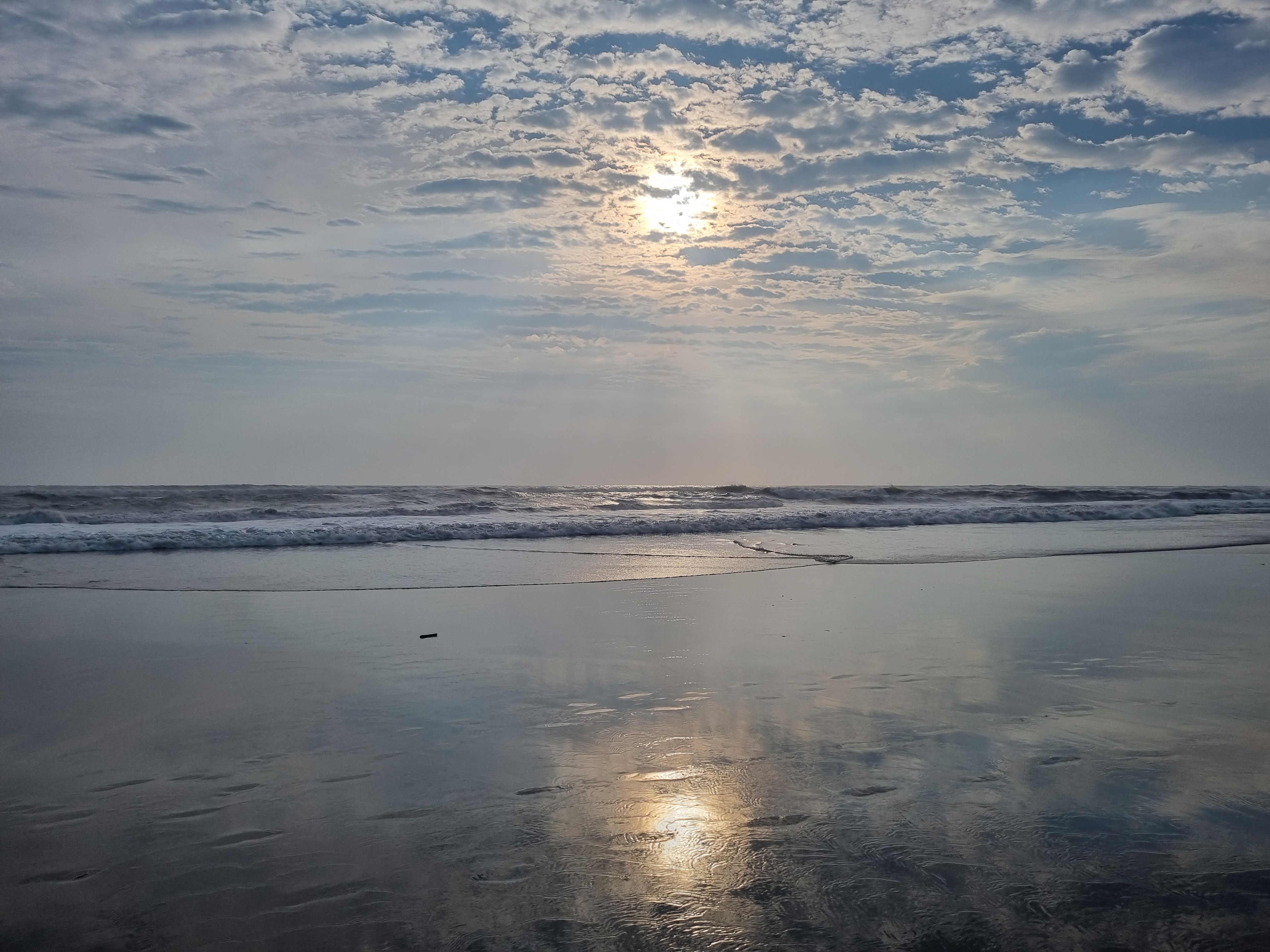 모래가 부드러웠습니다. 맨발로 해변을 걸어 보았습니다.