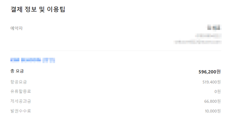 1명 기준 경유를 선택했을 경우 항공요금만 519,400원이었습니다.