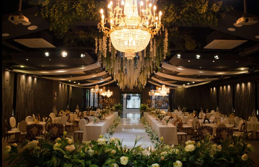 홀도 부산에서 흔치 않은 가든홀 느낌에 천장의 천 장식도 예뻤습니다.