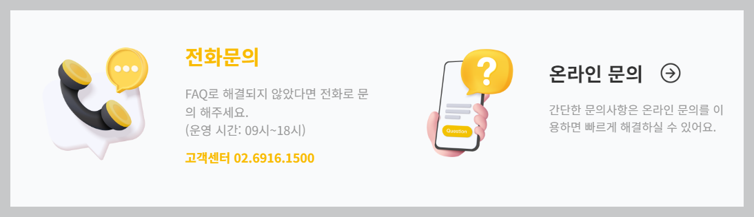 고객센터 전화번호는 02.6916.1500